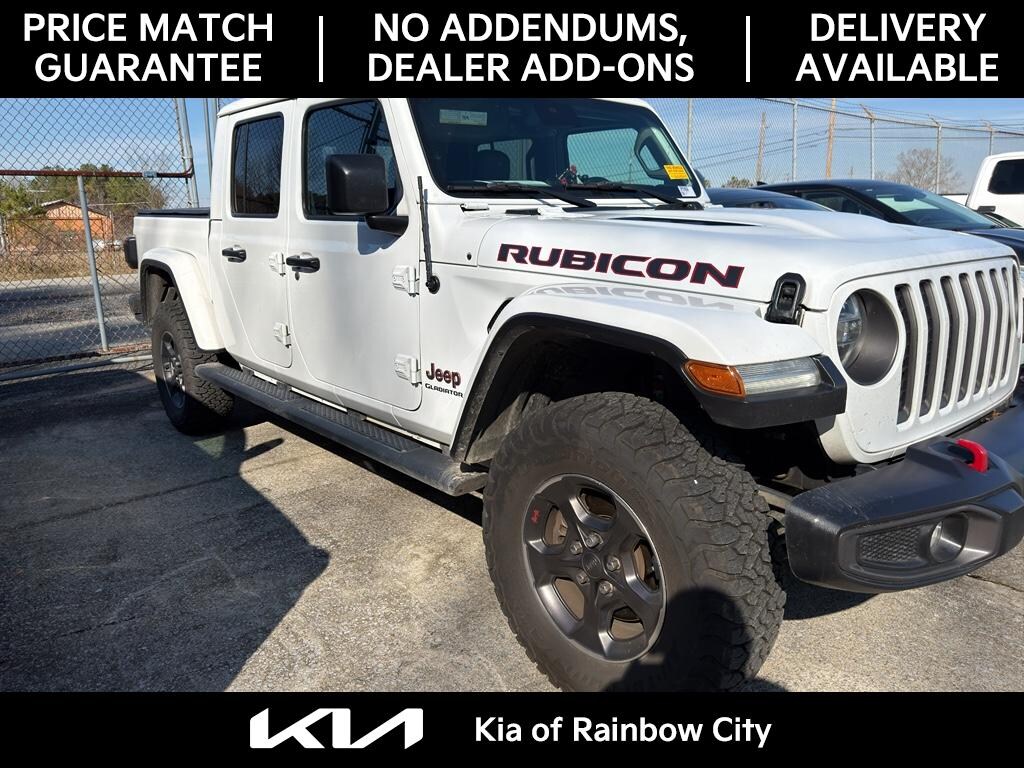 Experience rugged capability and modern comfort with this 2021 Jeep Gladiator Rubicon â€" a true off-road icon ready in Rainbow City, AL. Powered by a robust 3.6L V6 gasoline engine and equipped with 4WD, this Jeep Gladiator Rubicon delivers confidence on pavement and trails alike. Built for adventure, the Rubicon trim adds heavy-duty axles, locking differentials and an off-road tuned suspension so you can tackle rough terrain without sacrificing daily drivability. This Jeep Gladiator features Android Auto for seamless smartphone integration, easy-to-follow Navigation, and a Back-Up Camera plus Rear Parking Sensors to make parking and hitching a trailer effortless. Adaptive Cruise Control adds highway convenience for longer journeys, while the well-appointed interior keeps you comfortable mile after mile. Whether you're heading to the mountains or running errands around town, this Jeep Gladiator Rubicon combines utility and tech in a distinct, muscular package. The versatile truck bed and removable top let you tailor every trip to your style. Located in Rainbow City, AL, this Jeep Gladiator is priced to move â€" offering the best price in the area for a Rubicon with this equipment and condition. Don't miss your chance to own a capable, tech-forward Jeep Gladiator Rubicon at an unbeatable value. Call or visit today to schedule a test drive and see why this 2021 Rubicon is the perfect blend of performance, comfort, and off-road readiness.