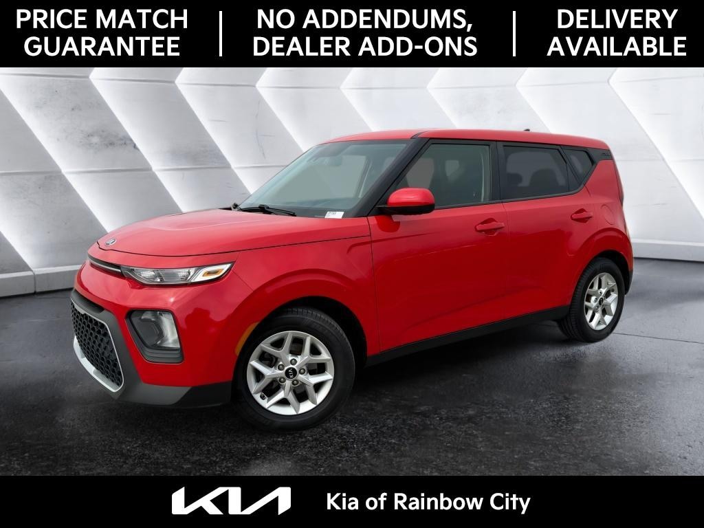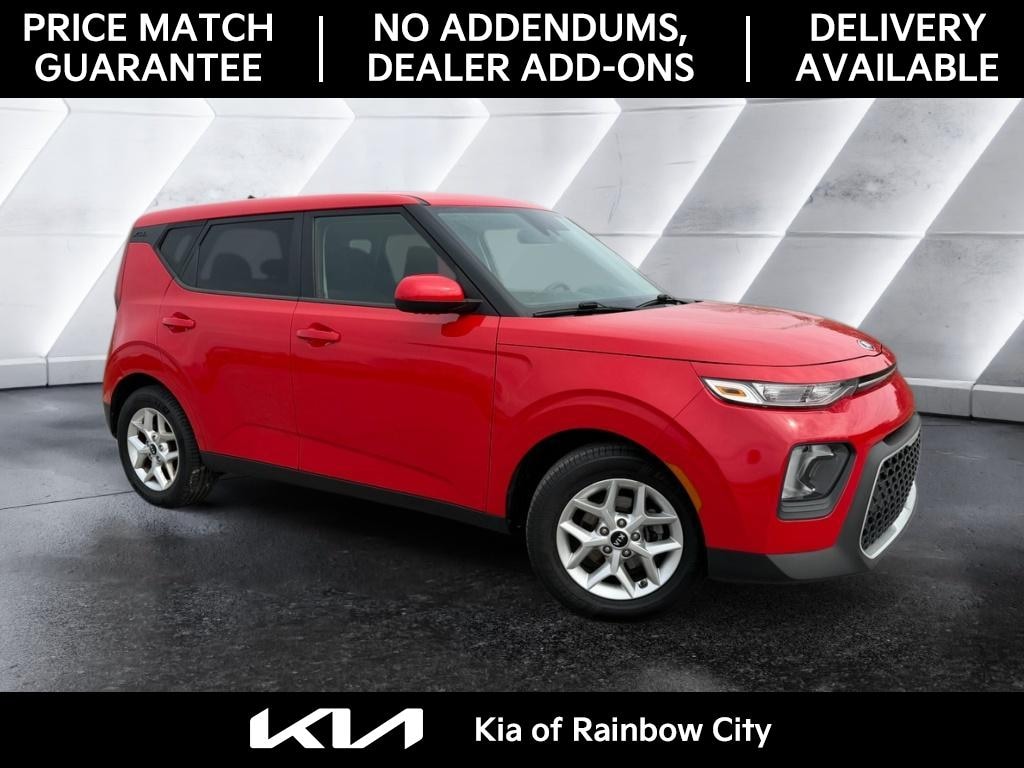 Find an exceptional value in Rainbow City, AL with this 2021 Kia Soul S, a stylish, practical compact crossover that blends efficiency and functionality. Powered by a responsive 2.0L 4-cylinder gasoline engine and front-wheel drive, this Kia Soul delivers confident everyday driving with excellent fuel economy and a comfortable ride. The well-appointed interior includes modern connectivity features like Apple CarPlay and Android Auto, plus Hands Free Bluetooth for seamless smartphone integration and safe, convenient calls on the go. Safety and convenience are priorities: the vehicle comes equipped with a Back-Up Camera for easier parking and a Collision Avoidance system to help protect you and your passengers. The Kia Soul S offers versatile cargo space and supportive seating, making it ideal for daily commutes, family errands, and weekend adventures. Its compact footprint provides easy maneuverability in city streets while the cabin remains surprisingly spacious. This 2021 Kia Soul S is priced to move and represents the best price in the area, giving you outstanding value without sacrificing quality. Located in Rainbow City, AL, the vehicle is ready for a test driveâ€"see its condition firsthand, review service history, and experience the features that make the Kia Soul a smart choice. Contact us today to schedule a viewing and secure this exceptional deal.