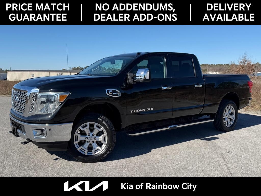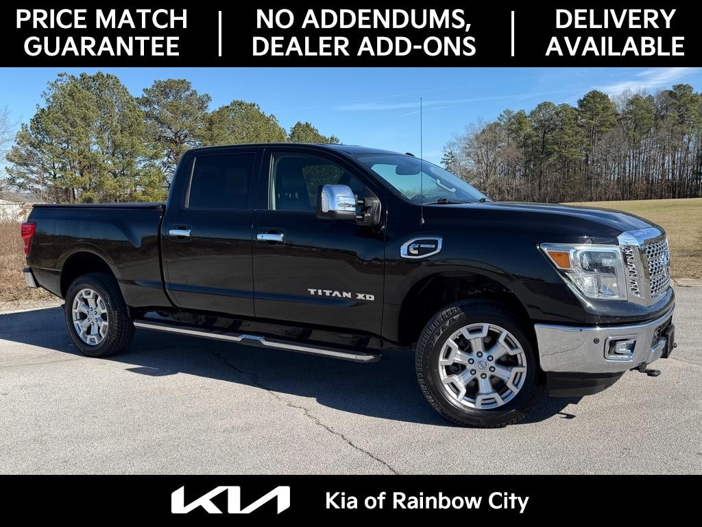 2016 Nissan Titan XD SL RWD â€" powerful V8 5.0L diesel performance meets rugged utility and luxury features in Rainbow City, AL. This Nissan Titan XD SL delivers confident towing and highway power with its durable 5.0L Cummins V8 diesel, paired to a rear-wheel-drive chassis for a strong, efficient driving experience. The premium SL trim adds comfort and convenience for daily driving and long hauls. Inside, enjoy intuitive Navigation to guide every trip and Automatic Climate Control to keep passengers comfortable in any weather. Remote Start lets you warm up or cool down the cabin before you get in, and Rear Parking Sensors assist with precise maneuvering in tight spaces. With a CARFAX Clean Report, this Titan comes with a documented history you can trust. The exterior blends functional design with capability â€" a bed ready for work or play and a rugged stance that commands the road. Practical technology, upscale interior touches, and robust diesel torque make this Nissan Titan XD an ideal choice for drivers who need capability without sacrificing comfort. Located in Rainbow City, AL, this 2016 Nissan Titan XD SL is competitively priced and advertised as the best price in the area. Schedule a test drive today to experience the combination of diesel power, premium features, and value this Titan brings to the market.