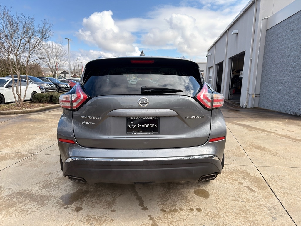 2017 Nissan Murano Platinum FWD â€" V6 3.5L â€" Gadsden, AL Looking for a premium crossover with performance, comfort, and value? This 2017 Nissan Murano Platinum in Gadsden, AL delivers. Powered by a smooth and responsive 3.5L V6 gasoline engine with efficient front-wheel drive, this Nissan Murano offers confident highway passing and a refined ride for daily commutes or weekend escapes. Top-tier Platinum features include Navigation to guide your trips, a Back-Up Camera for safer parking, and supple Leather Seats for lasting comfort. The Heated Steering Wheel adds cozy convenience on chilly mornings, while the upscale interior and thoughtful tech make every drive enjoyable. A CARFAX Clean Report provides peace of mindâ€"this vehicle has been well maintained and transparently documented. Priced to sell with the best value in the area, this Nissan Murano balances luxury appointments and practical reliability at a competitive price point. Whether you need family-friendly space, advanced convenience features, or a dependable engine, this crossover is a smart choice. Located in Gadsden, AL and ready for a test drive. Contact us today to schedule an appointment, request the CARFAX, or learn more about financing options. Don't miss this opportunity to own a well-equipped 2017 Nissan Murano Platinum at the best price.