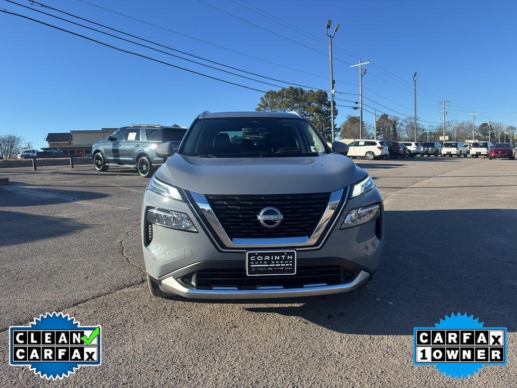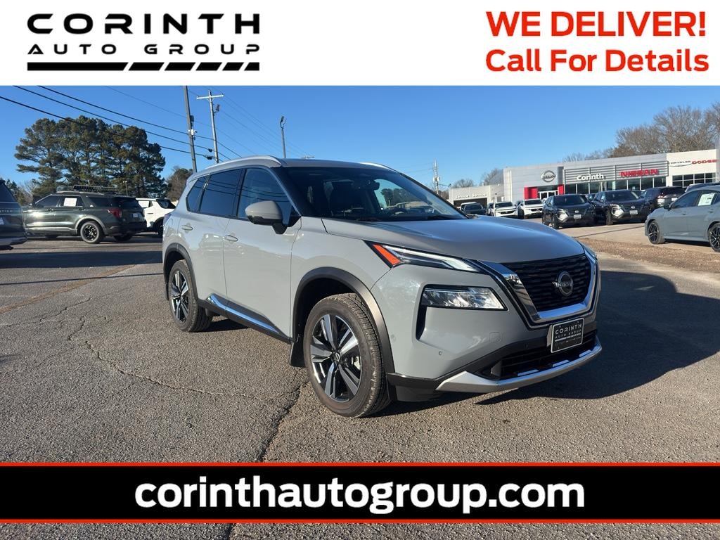 Experience exceptional value with this 2023 Nissan Rogue Platinum, now available in Corinth, MS. This stylish FWD crossover pairs a fuel-efficient 3-cylinder 1.5L gasoline engine with premium comfort and advanced featuresâ€"perfect for daily commutes or weekend getaways. With CARFAX 1-Owner history, you'll enjoy added confidence in the vehicle's condition and maintenance background. Step inside to find a refined cabin loaded with convenience: XM Radio keeps entertainment flowing, Hands-Free Bluetooth connects your devices seamlessly, and Remote Start ensures climate comfort before you step in. HID Headlamps light your path with crisp, clear visibility for safer night driving. The Platinum trim delivers upscale appointments and thoughtful tech that make every drive more enjoyable. This Nissan Rogue stands out on value and priceâ€"offered at the best price in the area, making it a smart buy for shoppers seeking premium features without premium cost. The compact yet versatile design gives you ample cargo space and comfortable seating, while advanced driver aids and a well-tuned suspension create a confident driving experience. Located in Corinth, MS, this 2023 Nissan Rogue Platinum is ready for a test drive. Don't miss the opportunity to own a well-equipped, single-owner SUV that balances efficiency, technology, and luxury. Contact us today to schedule a viewing and secure the best price on this exceptional Nissan Rogue.